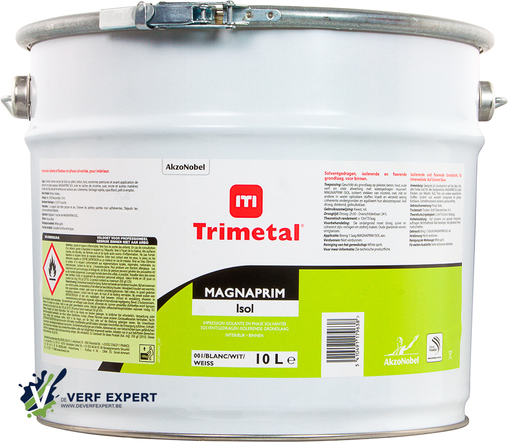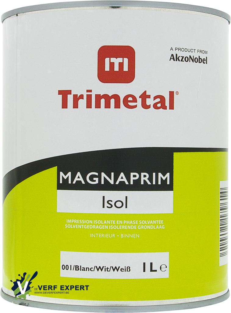 Magnaprim Isol is een dekkende, solventgedragen grondlaag voor binnenmuren en plafonds op basis van alkydharsen. Isoleert wateroplosbare vlekken.